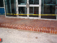 PROBLEM: Winter freeze-thaw cycles had caused tiles to spall from main entrance